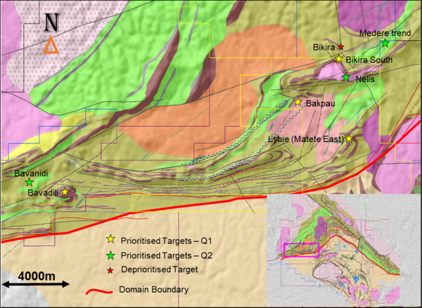Figure 1: Priority Targets Along the Imva Structure of the Ngayu Greenstone Belt